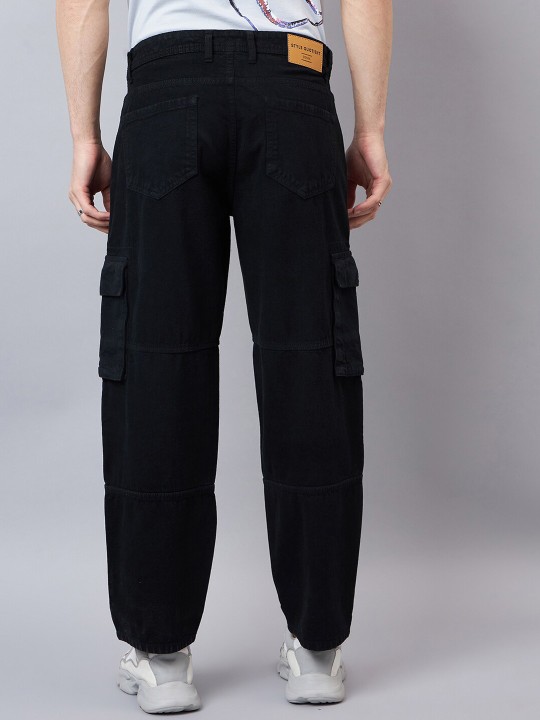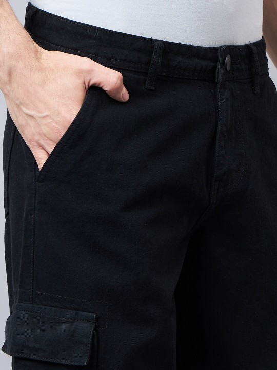 Men Relaxed FitMid Rise Clean Cotton Cargo Jeans